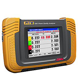 позволяет одновременно мониторить напряжение, ток, частоту, мощность, гармоники, небаланс и фликер. Причем анализатор сети электропитания PITE 3561 позволяет на протяжении 960 часов в автоматическом режиме записывать все измерянные значения.