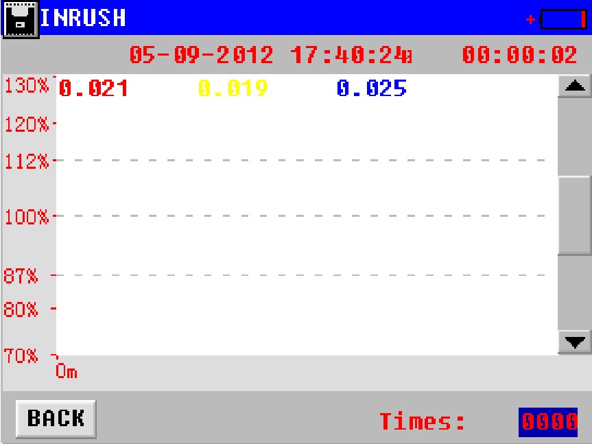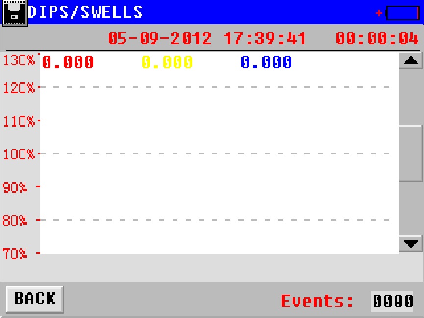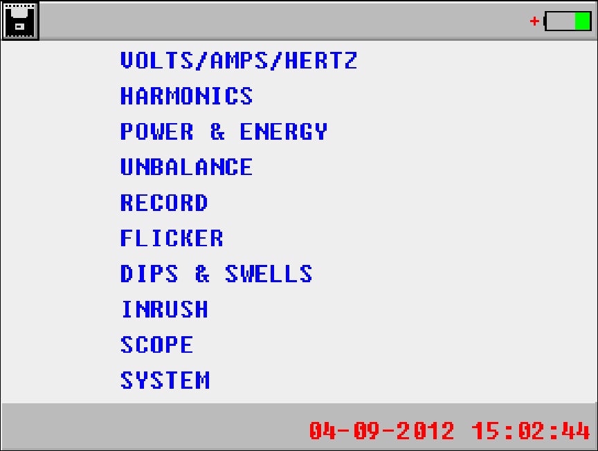фазах и нейтрали, напряжений (межфазных и фаза-нейтраль) и частоты. В этом режиме производится контроль максимальных, минимальных, среднеквадратических и средних арифметических значений напряжений и токов, а также коэффициента амплитуды сигнала (крест фактор). Существует возможность записи измеренных значений.