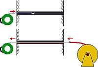 Конечно, вдувание существенно упрощает и ускоряет укладку кабелей в каналы, но, как бы там ни было, пока самым распространенным способом остается их втягивание. Разумеется, мы имеем в виду не те каналы, у которых есть крышка, — кабель в такие каналы просто вкладывается. Втягивание применяется в случае каналов в виде труб прямоугольного или круглого сечения. Иногда подобным способом кабель укладывается и на кабельные лотки, в полости стен или за фальш-потолком. Но это уже другая история.