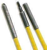 УЗК из гибкого стеклопластикового прутка имеют максимальную длину от 100 до 500 м в зависимости от толщины. Хороший пруток из стеклопластика обладает отличной упругостью и высокой гибкостью (минимальный радиус изгиба приблизительно равен его внешнему диаметру). Поэтому при использовании специального наконечника-лидера (чаще всего это шарик на тросике) УЗК на его основе в состоянии преодолевать длинные каналы с изгибами минимального радиуса и углом около 900. Кроме того, вес такого УЗК существенно меньше по сравнению с любым УЗК из металла, а диэлектрические свойства повышают безопасность выполнения работ.
