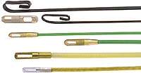УЗК с гибким металлическим прутком дешевле, неприхотливей в эксплуатации, но при этом имеют существенно больший вес и меньшую гибкость. Да и максимальная длина их ограничена 60 м. Такие УЗК плохо пригодны для проходки каналов с изгибами малого радиуса с углом больше, чем 450. УЗК из металлического тросика по своим свойствам (вес, цена и гибкость) находятся где-то посредине между стеклопластиковым и металлическим прутком, но при меньшей максимальной длине. Особое место занимают УЗК из плоской ленты для укладки кабеля под ковровым покрытием.