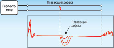 Фиксация «плавающих» дефектов — еще одна незаменимая функция современного рефлектометра. Только с ее помощью можно локализовать места расположения периодически проявляющихся эффектов некачественного соединения жил или пониженного сопротивления изоляции. О дефектах такого рода свидетельствуют жалобы клиентов на повышенный шум линии или кратковременное пропадание сигнала «ответ станции». «Плавающие» дефекты могут проявляться по самым разным причинам — при подаче в линию вызывного напряжения, вследствие механического воздействия на кабель в месте повреждения (например, вибрация от проходящего рядом трамвая или какого-либо работающего оборудования) и т. п.