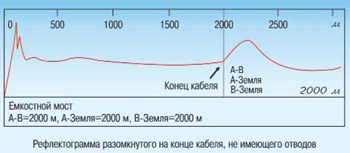 Емкостный мост — это тот прибор, который наиболее часто используется для определения длины кабеля, разомкнутого на дальнем конце. К сожалению, он позволяет определить только общую длину пары кабеля, включая все параллельные отводы.