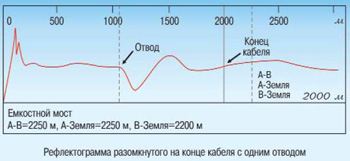Рефлектометр в данном случае является самым оптимальным — и к тому же единственным — прибором, который позволяет находить места параллельных отводов, измерять их длину и определять расстояние до них.