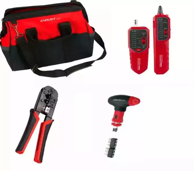 В комплект входит В комплект входит кабельный тестер Noyafa NF-168S, который позволит быстро проверить кабель витой пары на ошибки монтажа, обрывы и короткие замыкания. Тестер имеет встроенный генератор тонального сигнала и, совместно с индуктивным щупом (опция), даст возможность отбирать кабель из пучка, или найти нужный порт коммутатора. Обжимной инструмент легко выполнит монтаж 4-x, 6-ти и 8-и позиционных модульных коннекторов (RJ22, RJ11, RJ12 и RJ45). Стриппер для зачистки предназначен для витой пары, коаксиального и плоского телефонного кабеля. Также набор комплектуется универсальной отверткой с множеством сменных бит, с помощью которой, Вы сможете выполнить практически любую работу по разборке/сборке телекоммуникационных конструкций. Все предметы помещаются в компактную прочную сумку.